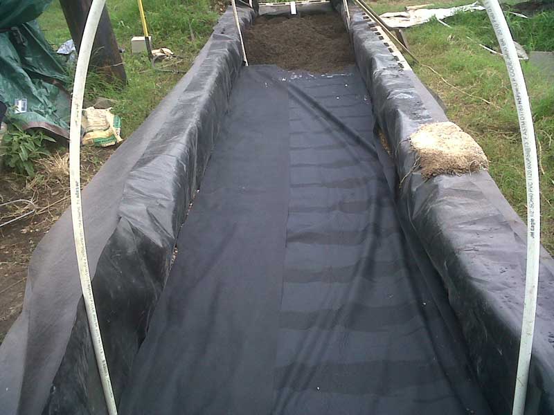 Install a layer of weed cloth over the pea gravel.